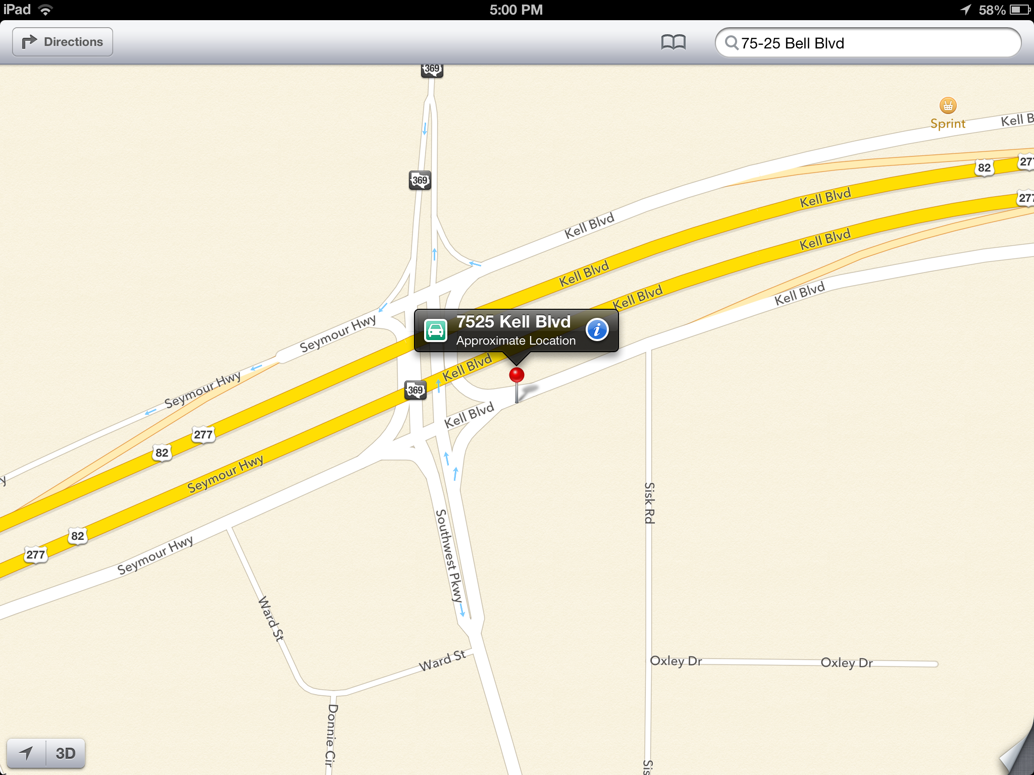 I was trying to get to a school on Bell Boulevard in Queens. Good thing I didn’t follow the iPad’s directions. (Kell Boulevard is in Texas.)