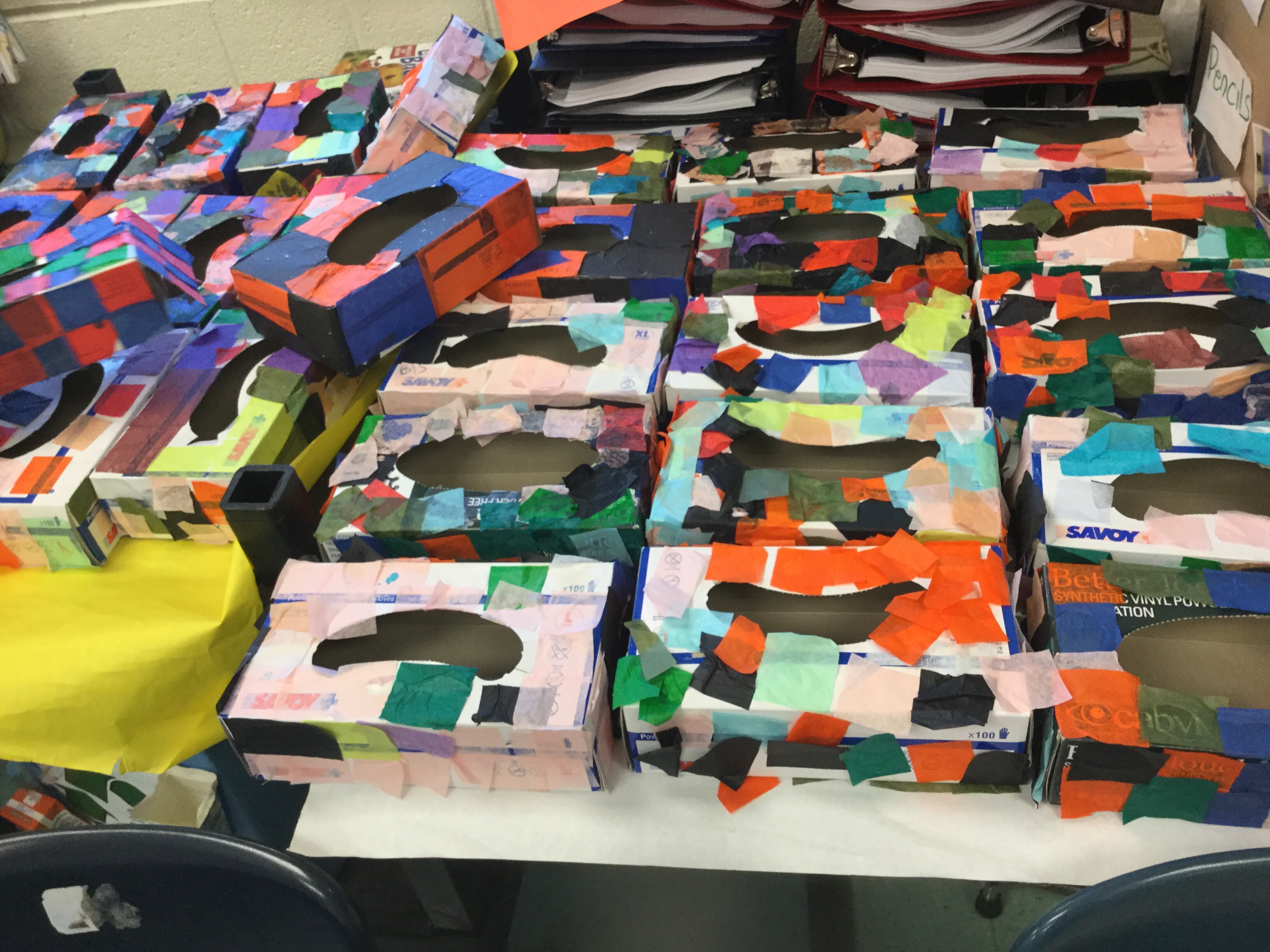 When a class has a magic marker or pen that is dried out, they go into the tissue boxes.