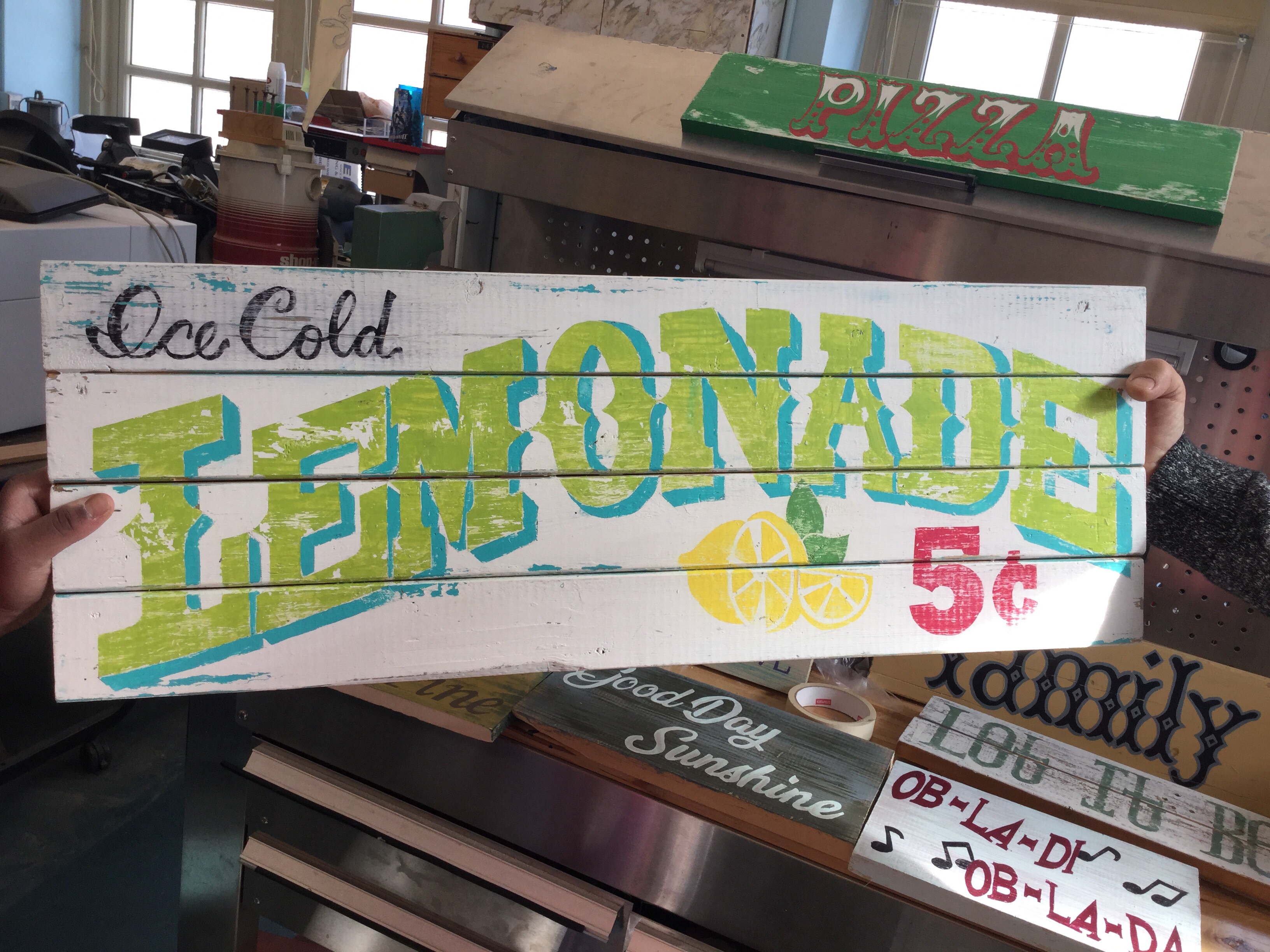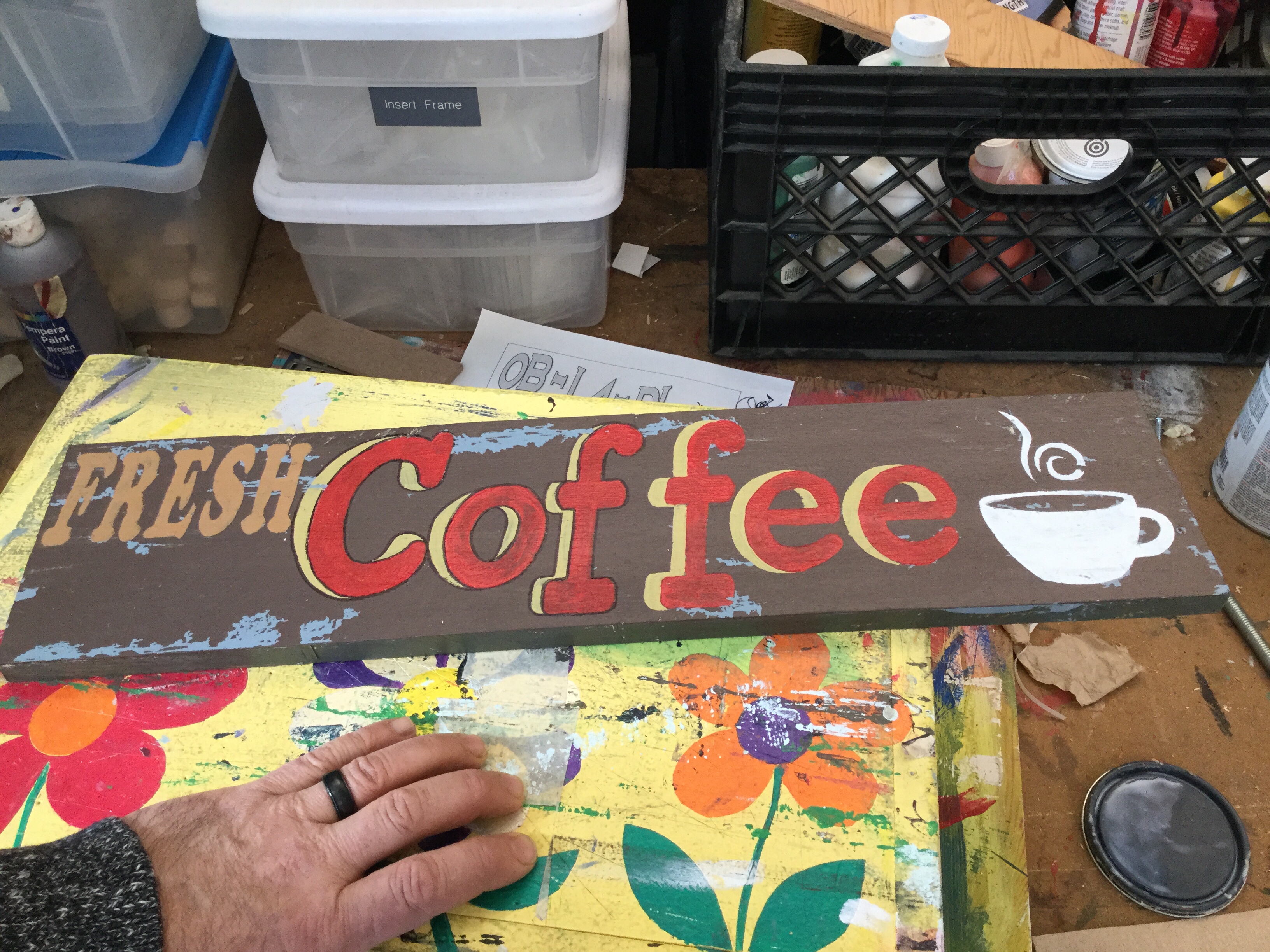 The physical therapist uses carpentry as therapy. Reusing old wood, creating stencils, transfering to paper, then to masking tape on the boards, then cutting out, then painting, etc. Students work with the PT. Definitely marketable.