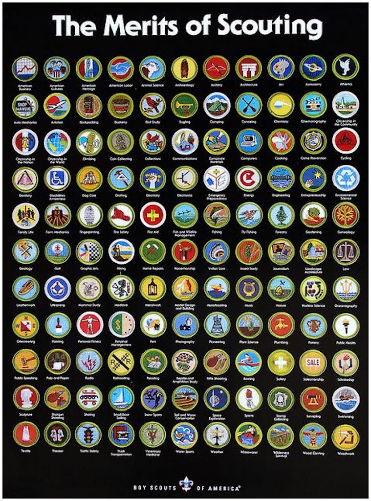 There is a new idiocy movement sweeping the “sitting-behind-a-desk” world: achievement badges. Companies, including many educational technology companies, are eager to bestow digital images, which they call badges, on people who complete online courses and in-person seminars. Winners of these digital badge images can attach them to their email signatures, their Linked-in profiles, etc. The more badges a person has, the more *fill-in-the-blank* they are/get.