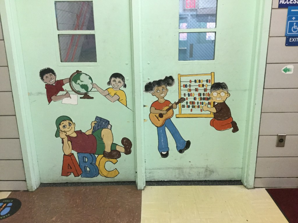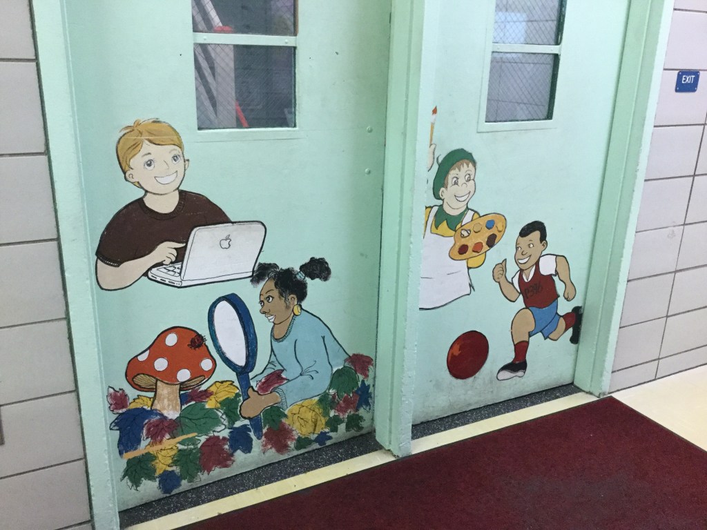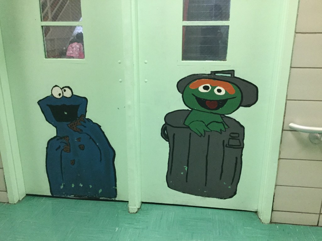These bright, cheerful paintings adorn the doors of my temporary (?) redeployment.