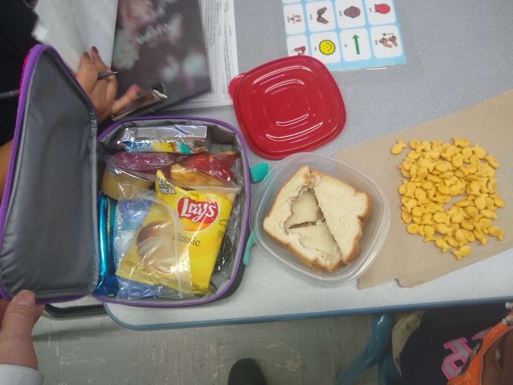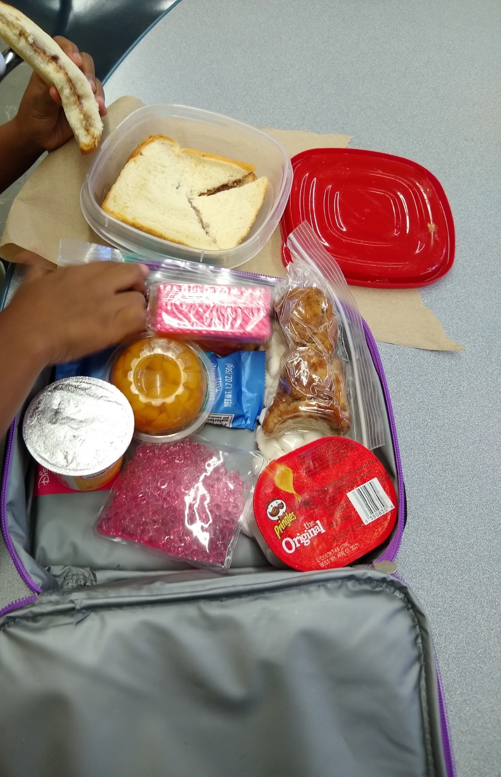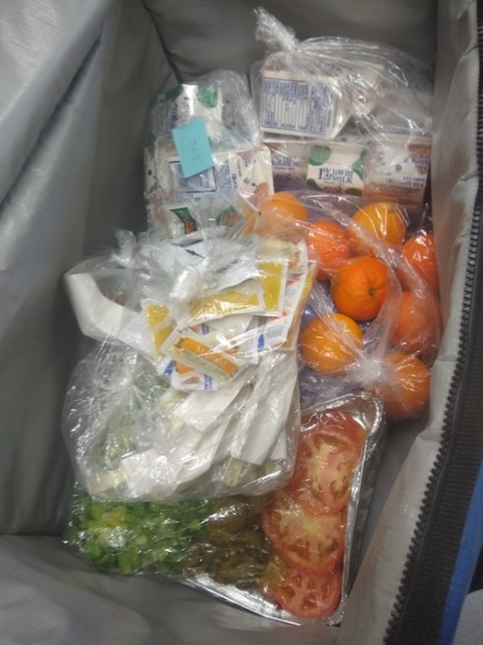 I am starting a new series, documenting School Lunches. This is fancy lunch, people, made fresh everyday in the school kitchen, boxed up to look like a big fat TV dinner, and served in the classroom. They come with sides and all the trimmin’s. And yes, the portions for the kindergartens are exactly the same as the portions for high schoolers.