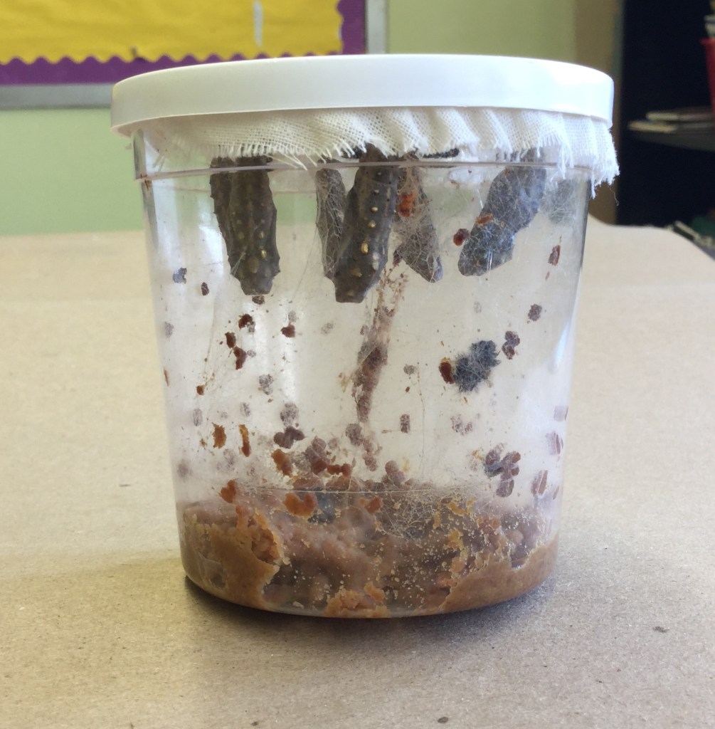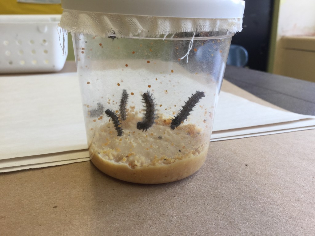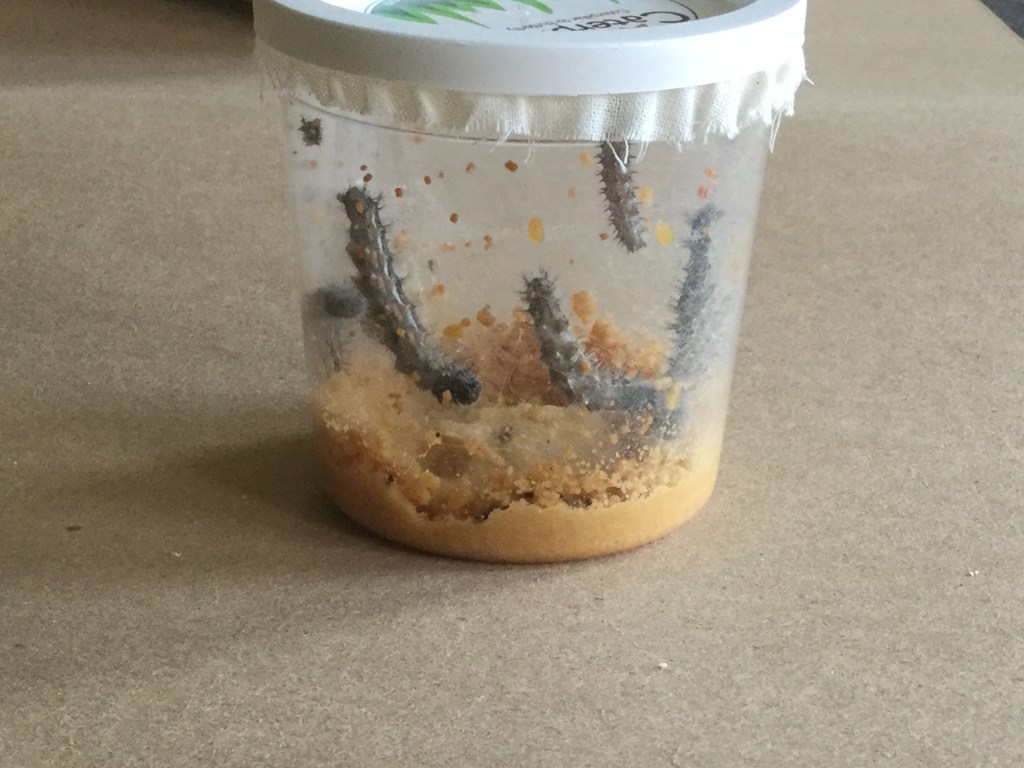 I bought painted lady caterpillars, to somehow incorporate them into the April=Animals curriculum. They came.