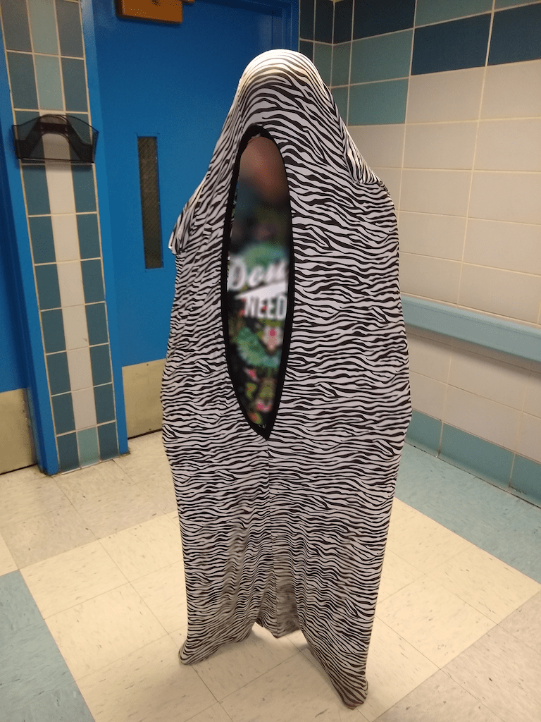 Is it a slanket? A blankecoon? Anyway, I believe the student was involved in a physical therapy activity.
