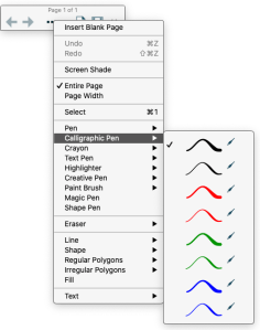 I called up each student and invited them to come to the board to write their name. They could use the Pen or the Calligraphic Pen. (After the first couple of classes, I only offered students the Pen.)Â Students had to remember the sequence to get to the Pen(s) and choose a color. Students helped other students. (In one of the classes, a student erased another students name, then denied doing it. A quick “undo” put the name back on the screen, and a warning was issued that it would no be tolerated in future.
