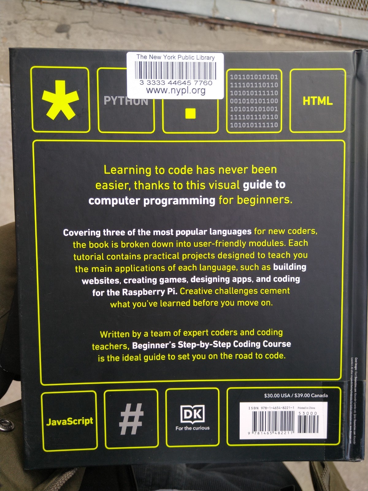 What I like is that it covered Scratch, which is what I did with some of the classes. Although there was not enough time/cognitive ability (on my part, anyway) to do python, javascript or html/css, nevertheless it was there for the learning (I actually do know html, and a small amount of css).