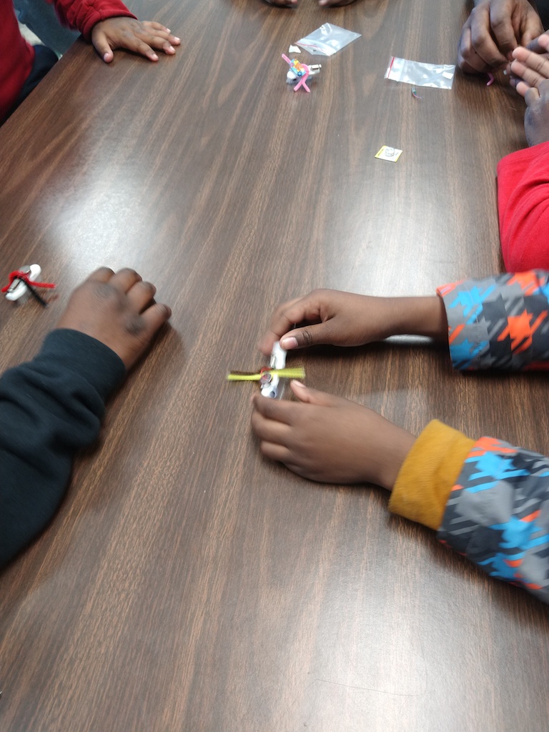 My one suggestion is to figure out a better way to attach the motor’s wires to the battery – this was the weak spot in the activity.