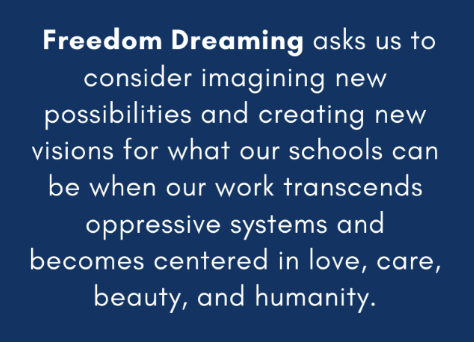 A short google search of the phrase “Freedom Dreaming,” the upcoming conference offered by the NYCDOE The Office of Organizational Development, Talent, and Culture in the Diversity, Equity, Inclusion and Belonging portfolio, returns this result from CUNY Academic Commons website: