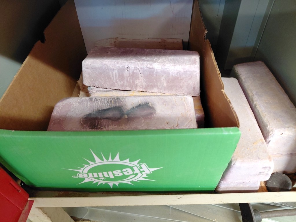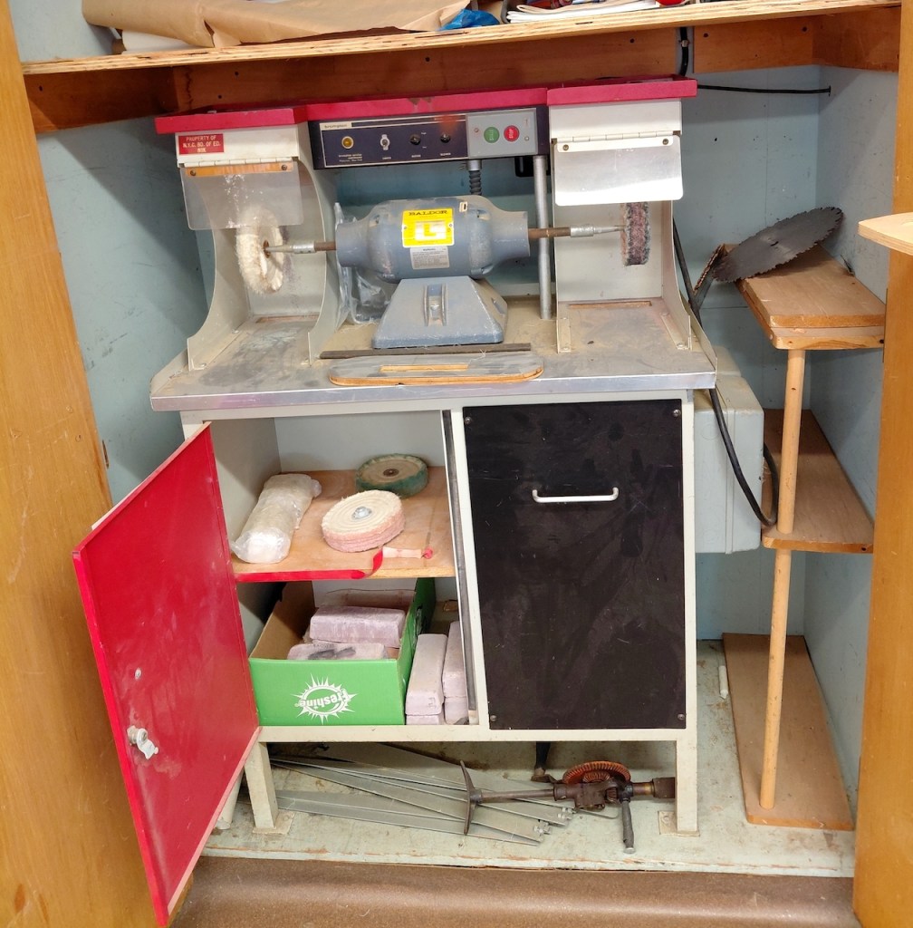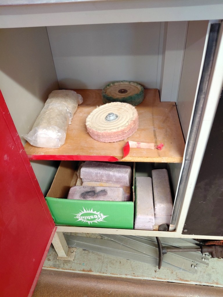 This machine still works. Spinning soft brushes smooth down the sides of items. I cannot recall what the thick rubbery blocks are for though.