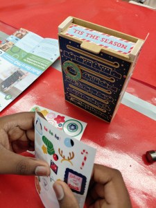Here are more letter boxes. The wreath ring is put on the succeeding lines to count down the month.