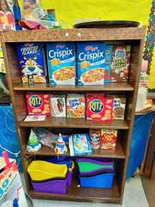 From a classroom kitchen area. I would stay for the stuffing, also the cereal. Crispix is crispy times two!