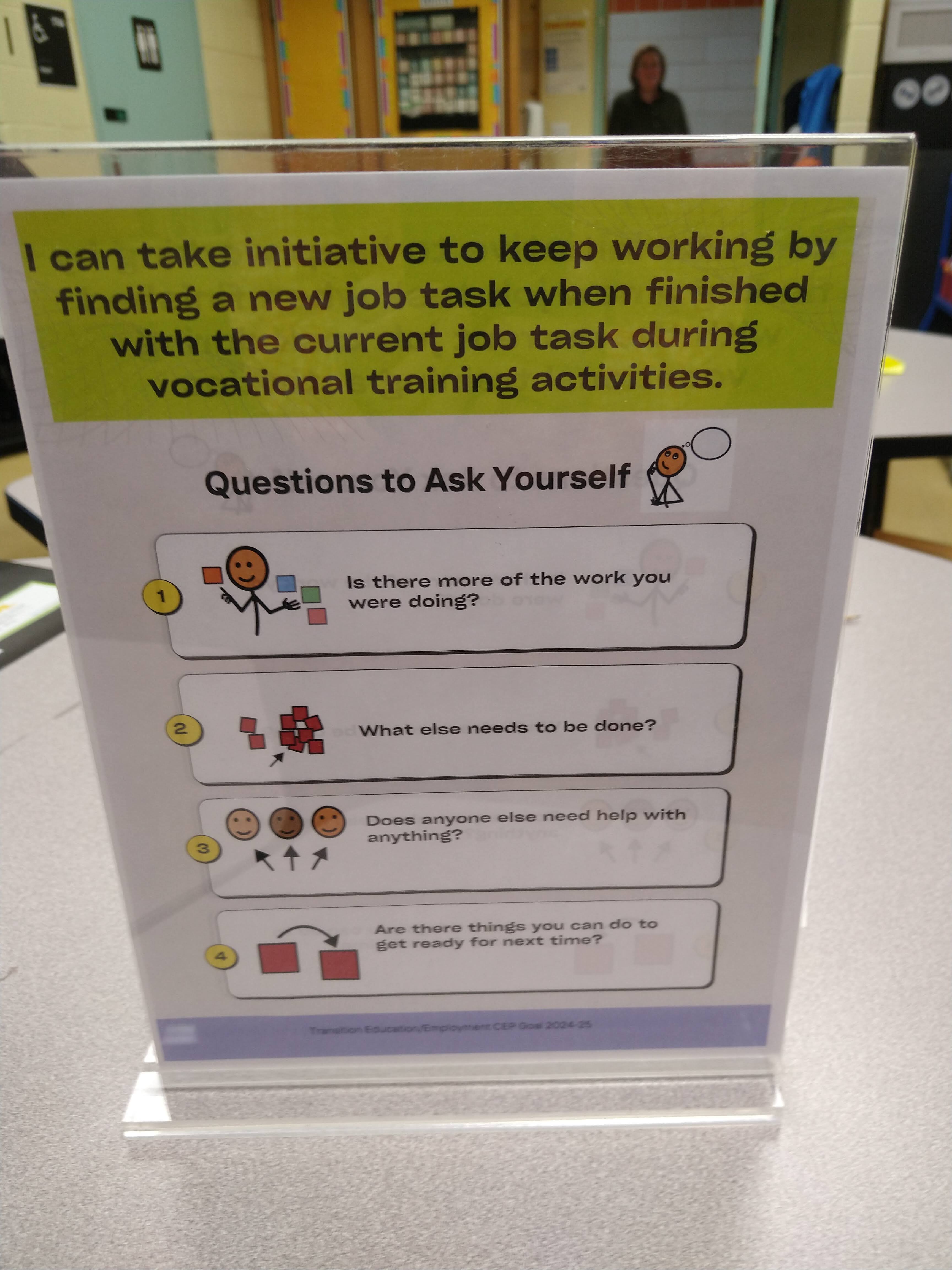 A recent field trip to Wegmans supermarket in Brooklyn revealed a lovely example of accessibility for its employees. The broom and dustpan (they called it a “butler”) for the custodial staff had photos of the items as well as labels. Reminds me of our accessible classrooms.