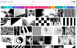I was thinking about Google searches. I searched for “Black and White” and “White and Black.” Look at the different suggestions? filters? that Google adds to the search bar.