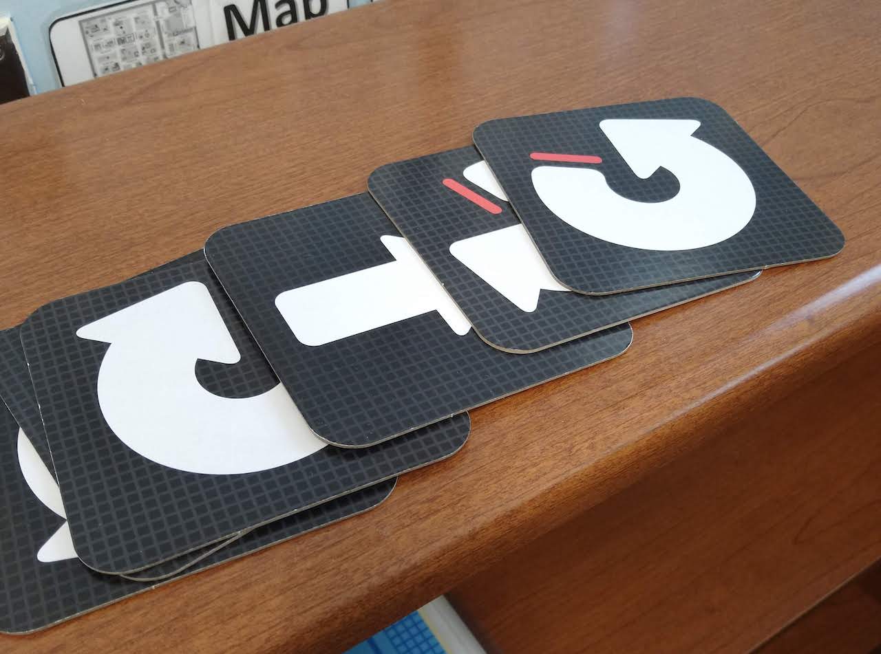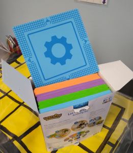 Learning Resources Let’s Go Code Activity Set is an off-screen coding activity. The kids are the robots who have to follow commands to jump across foam floor mats.