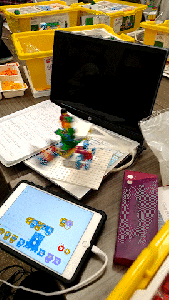 Second time I am seeing the class this week. First time I pretended to be a robot and they programmed me to get to the lightswitch in the doorway…move forward x number of steps, turn left, turn right.