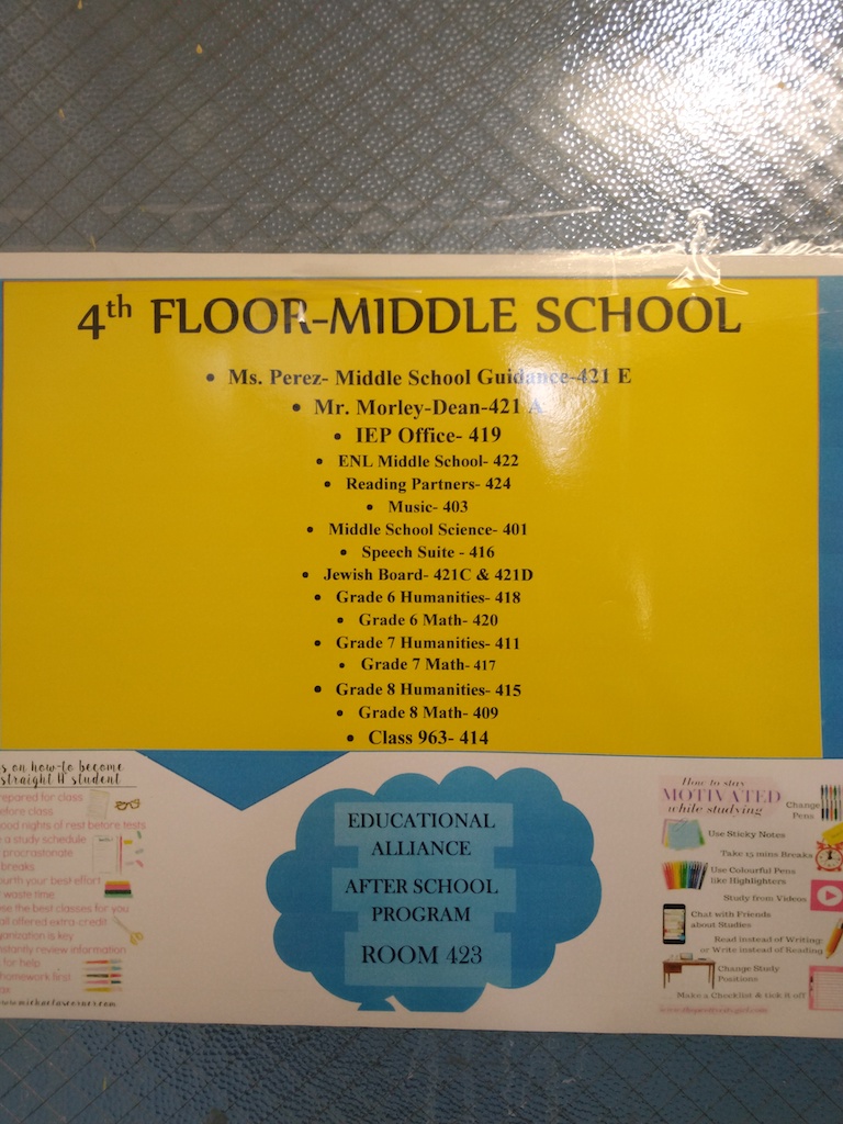 I saw this sign in the stairway at 188 in Manhattan, which is a co-located building. That means there are several different schools there, including charter schools.