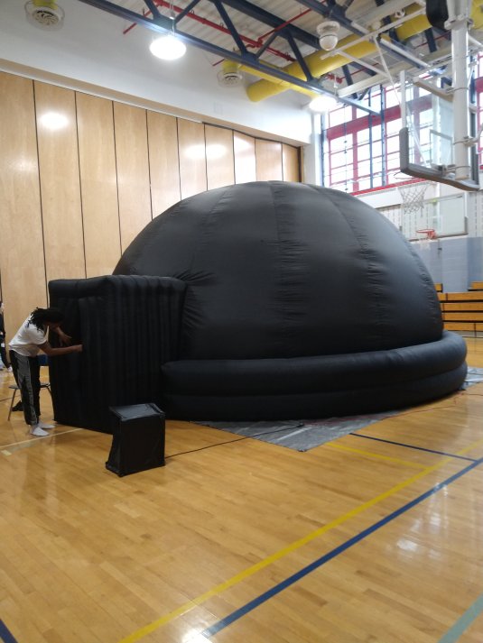 In a gymnasium in a school in Long Island City, a bouncy-house planetarium! The idea is brilliant and the show was excellent. (Narrated by Galaxy Quest actor Tim Allen).
