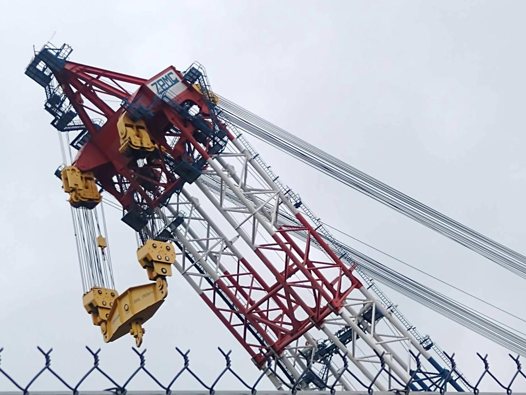 The blue structure in the image is the base of an enormous crane, which extended far into the sky