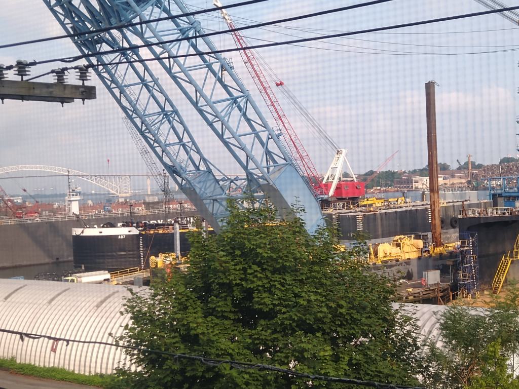 The view from a classroom window showed a dry dock, which is used to repair large boats like the Staten Island Ferry.