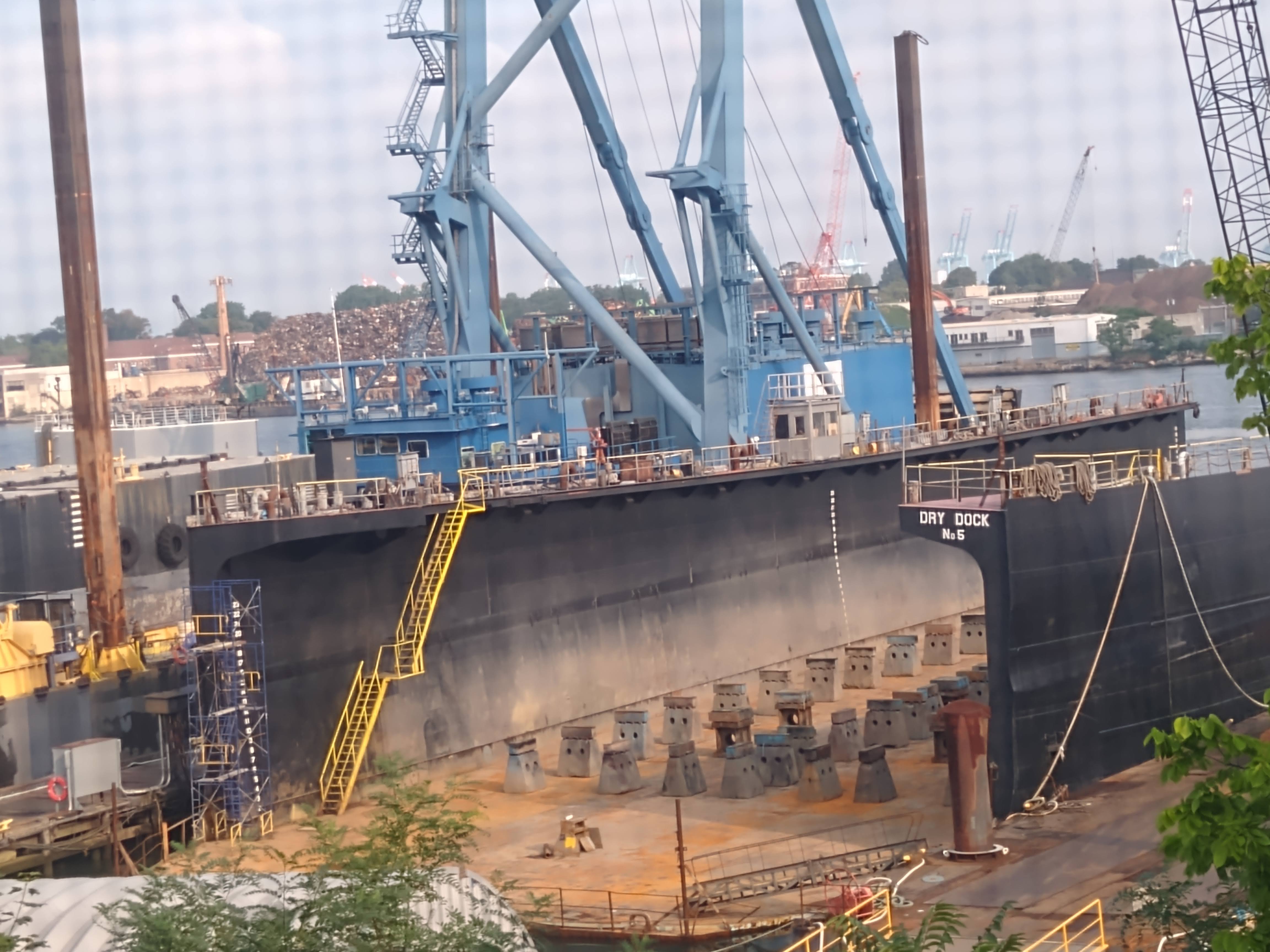 The view from a classroom window showed a dry dock, which is used to repair large boats like the Staten Island Ferry.