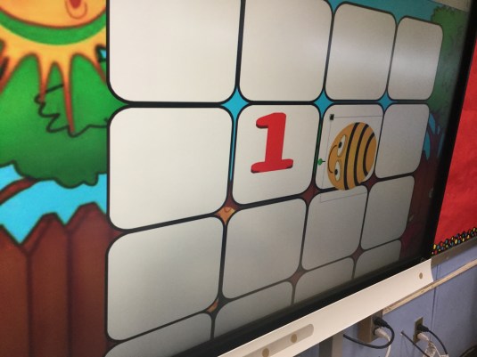 We went to beebot emulator website (beebot.terrapinlogo.com) on the smartboard. I demonstrated how it works. I showed a couple of moves using the blank card mat, then had two students come up to command the beebot using the alphabet mat.