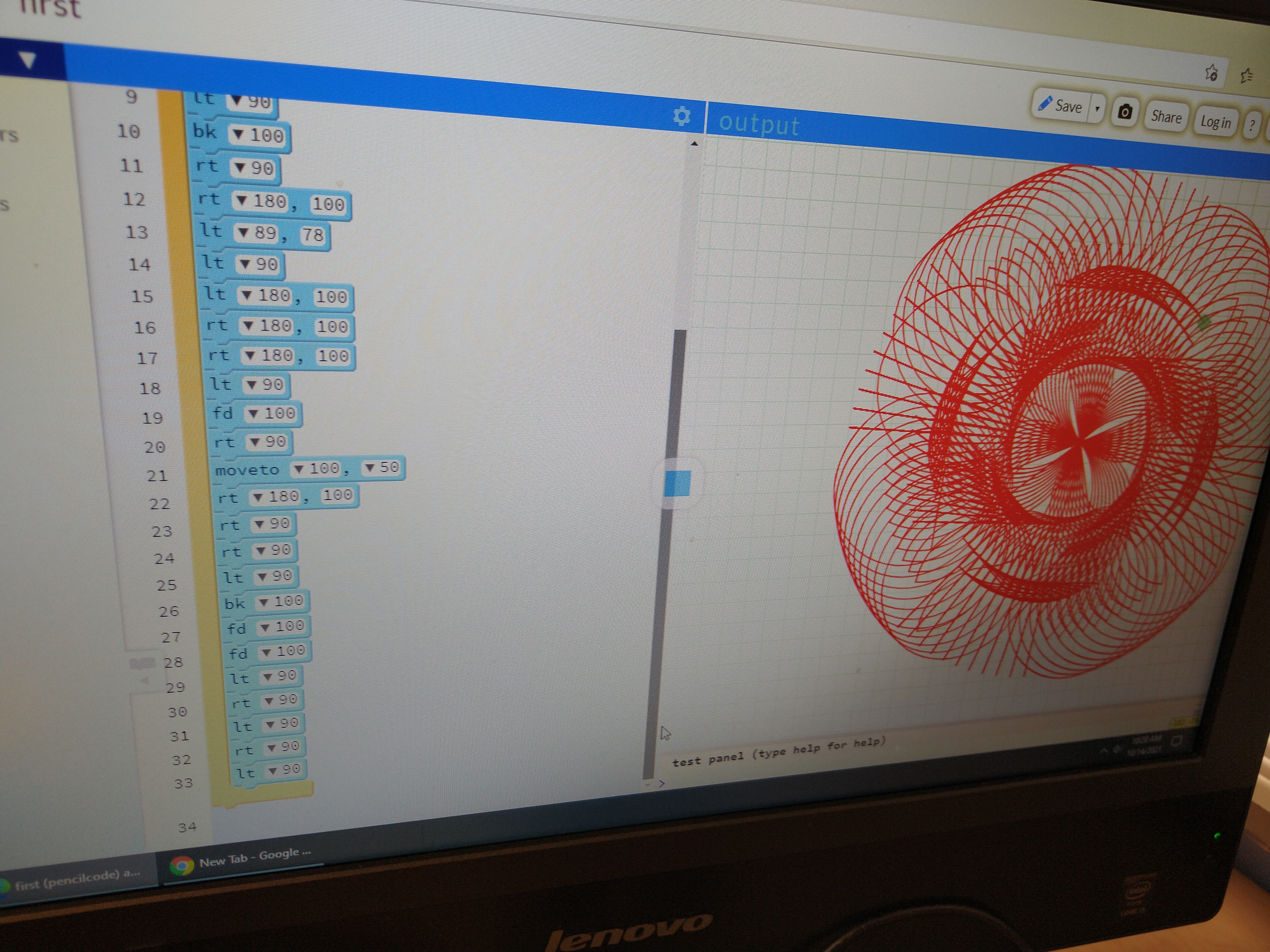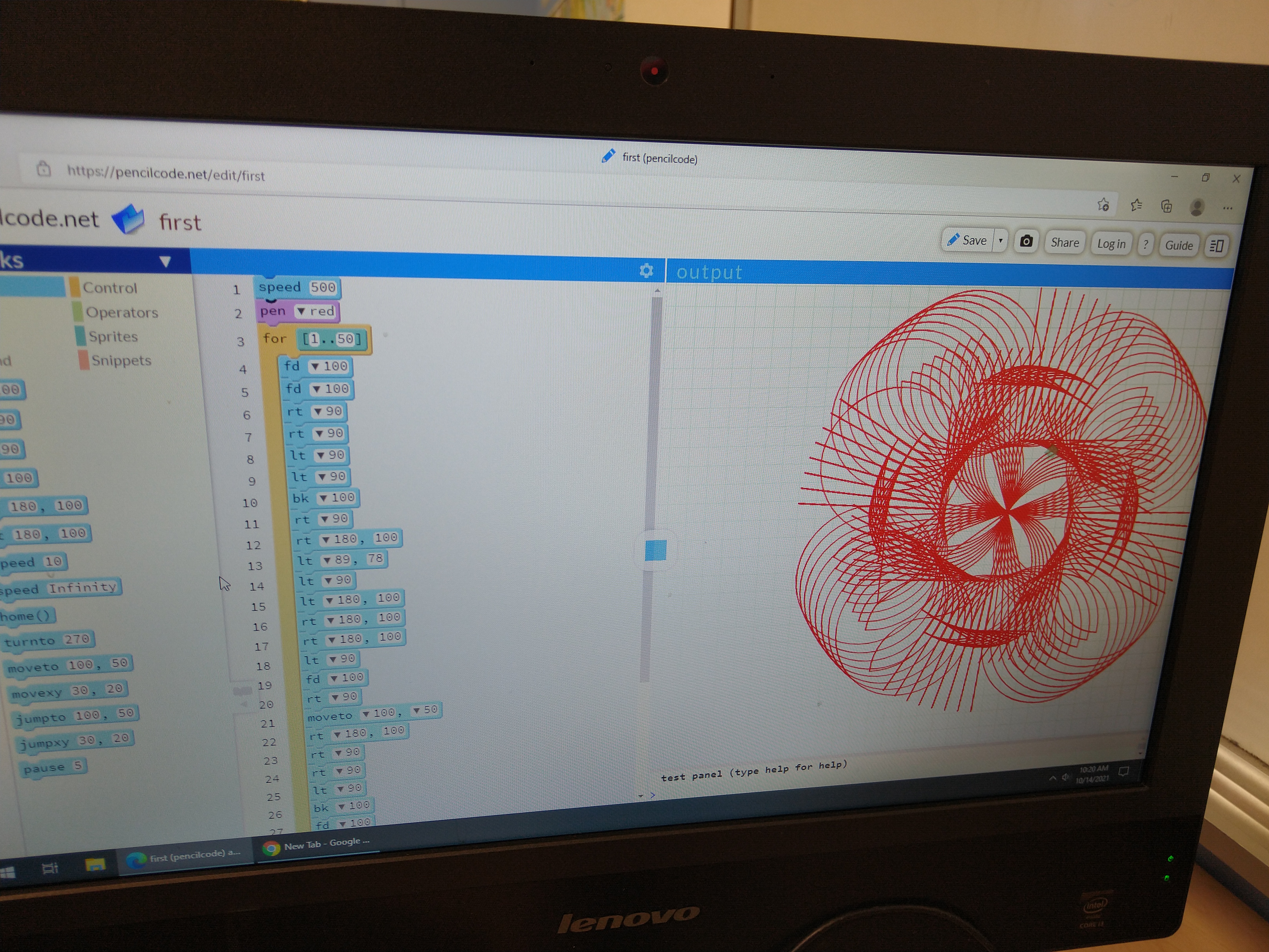 in 36K, computer lab, Covid 19, deployment Tags: 36K, pencilcode.net, Spirograph