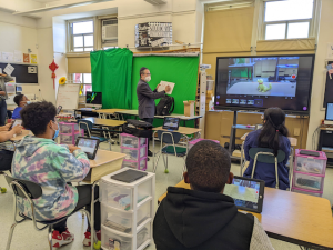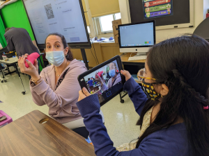 The students made stop-motion animation videos. We started with dry erase markers on white boards, and then advanced to play-doh and clay.