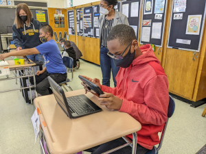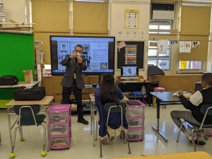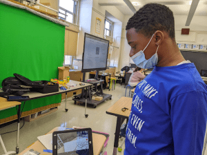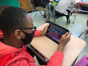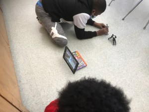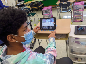 Student Jesus wrote his name in claymation. He used fine motor skills to roll the playdoh and spelling, as well as Stop Motion Studio app on the iPad.