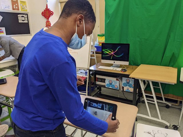 The students made stop-motion animation videos. We started with dry erase markers on white boards, and then advanced to play-doh and clay.