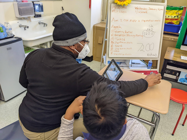 Student Jesus wrote his name in claymation. He used fine motor skills to roll the playdoh and spelling, as well as Stop Motion Studio app on the iPad.